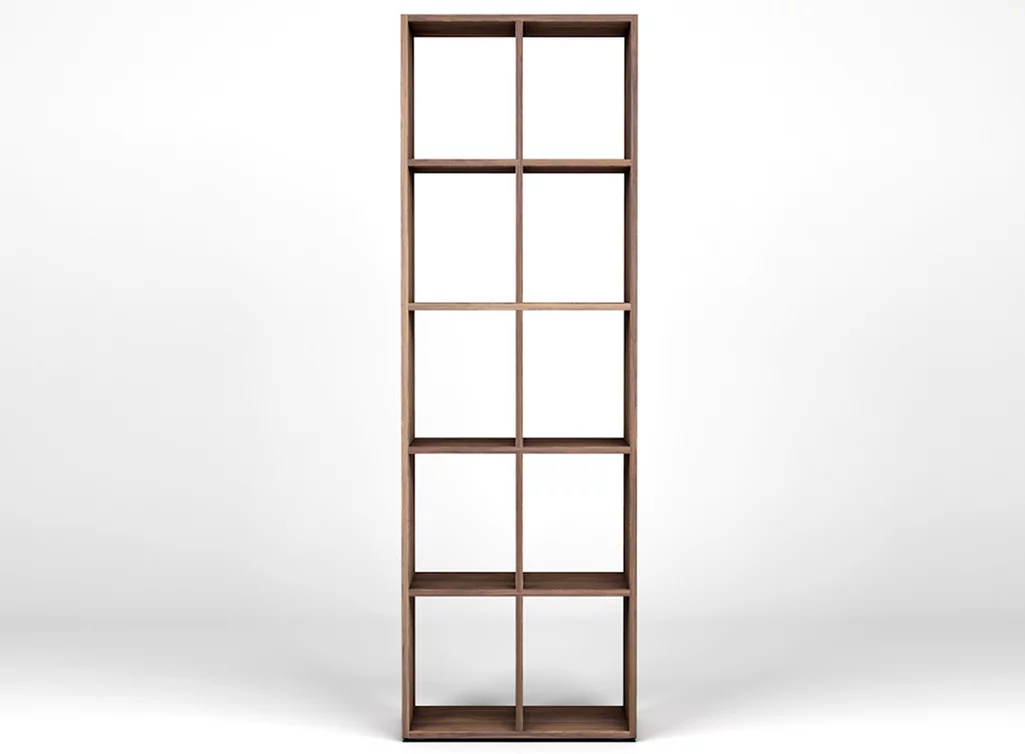 Das Massivholz Regal aus wertvollem Nussbaumholz verschafft Dir Ordnung und Übersicht, ist aber längst nicht nur ein praktische Möbelstück. Das attraktive und hochwertige Regal mit seinem schönen dunklen Holzton passt mit seinem bewusst schlicht gehaltenem Design zu den verschiedensten Einrichtungsstilen. In der Nachbarschaft antiker Möbel ist es ebenso gut aufgehoben wie in einem ganz modernen oder in einem rustikalen Ambiente. Als Bücherregal nach Maß verfügt das Möbel über gleichgroße Fächer, ist mittig geteilt und nicht mit einer Rückwand versehen. Dadurch wirkt dieses Nussbaum Bücherregal ganz leicht und unaufdringlich, ist dabei aber massiv und außerordentlich stabil.