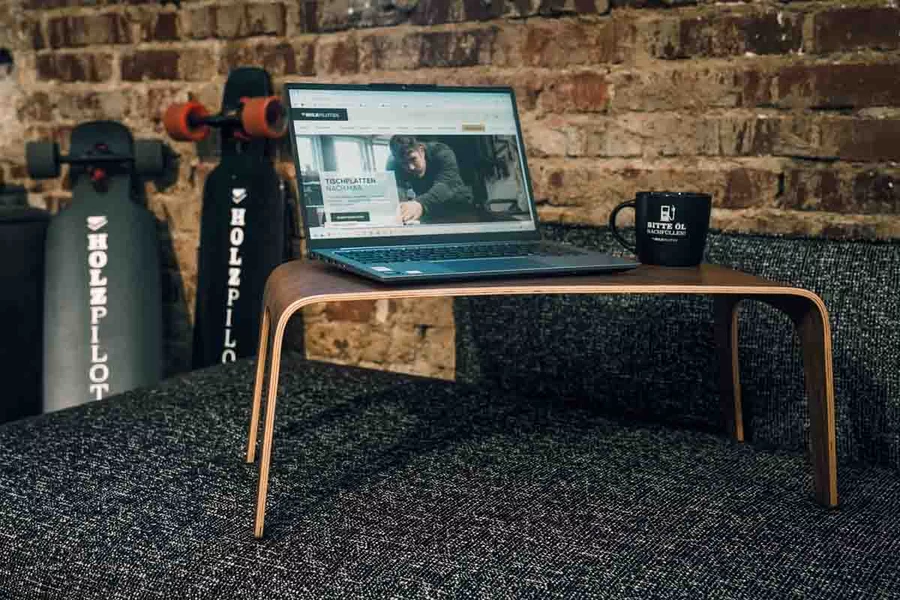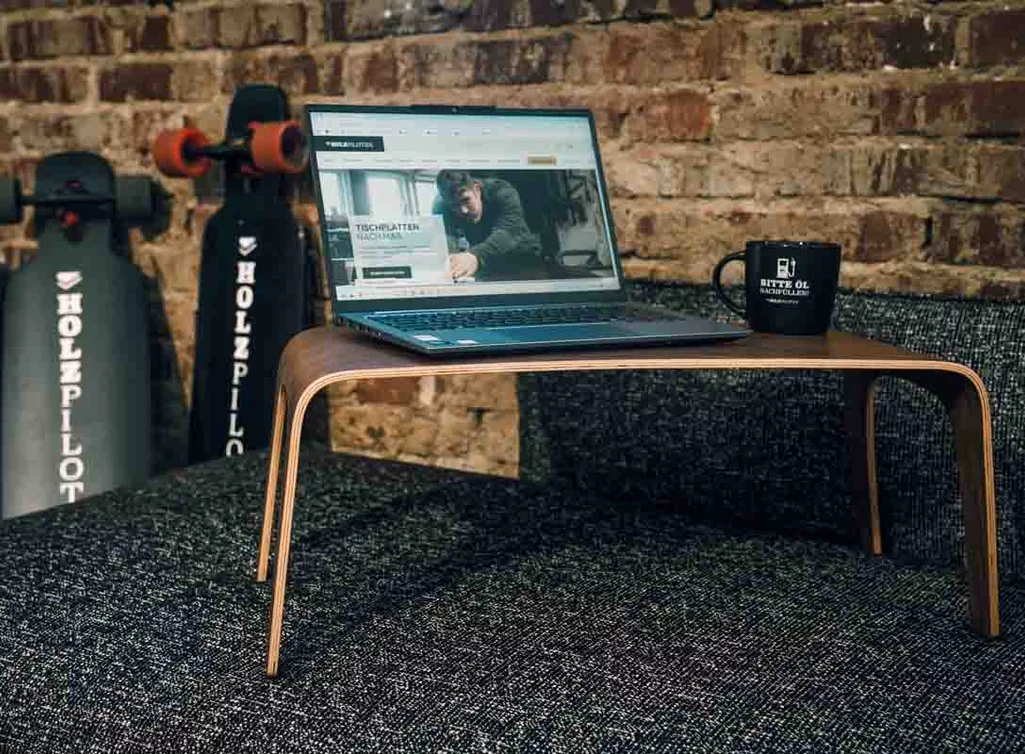 Die durchdachten Maße machen den Laptop Table perfekt für die Nutzung im Sitzen oder Liegen. Er bietet genug Platz für Laptop, Buch und Kaffeetasse – und passt dank seiner schlanken Form bequem über die Beine oder auf weiche Unterlagen.