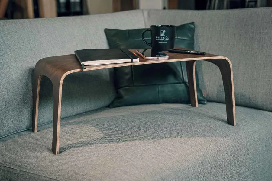 Laptop Table Nussbaum – kompakter Bett- & Sofatisch aus Multiplex